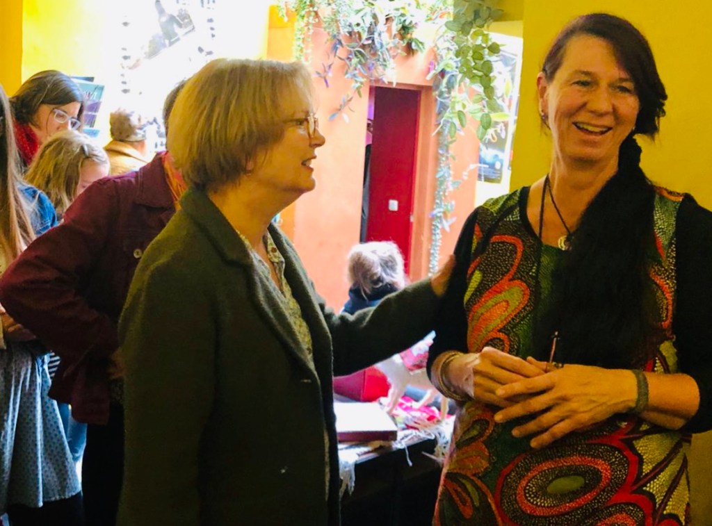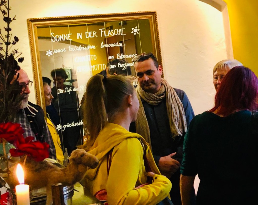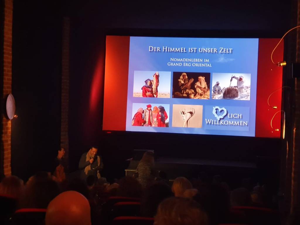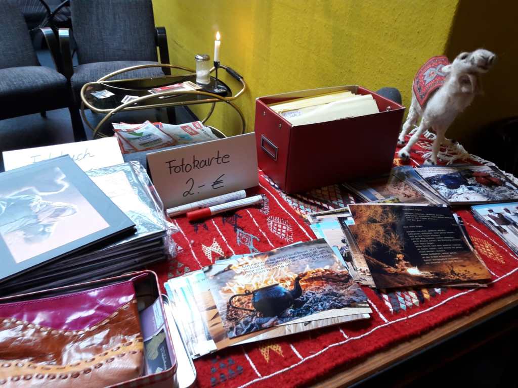 Anschließend standen die Kinobesucher noch beisammen und ließen die Erlebnisse mit den Sternenzeltnomaden im Gespräch nachklingen. Viele Karten mit Fotomotiven aus der Sahara und Bücher der auch als Fotografen aktiven Veranstalter konnten verkauft werden. Auch dieser Erlös kommt dem Verein zu Gute.