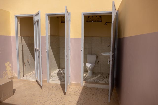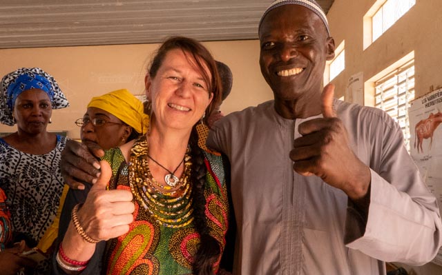 ‚Kommt doch mit uns, wir möchten euch gerne zeigen, was sich seit eurem letzten Besuch alles verändert hat.‘ Mit dieser freundlichen Aufforderung werden wir durch das große Schulgelände geführt, besuchen den Brunnen, der mit seinen 30 Metern Tiefe im Moment nicht mehr ausreicht, Wasser zu schütten. ‚Die letzte Regenzeit war viel zu spät und zu kurz. Seitdem haben wir kaum noch Wasser. Das ist der Klimawandel.‘ so erläutert uns Direktor Moussa. Auch die Toilettenanlagen (unser letztes Projekt) werden uns in gutem Zustand gezeigt.