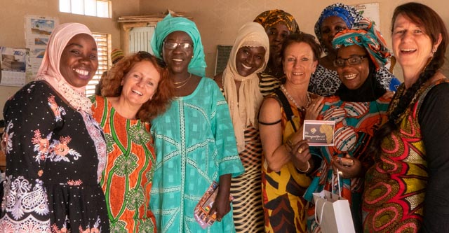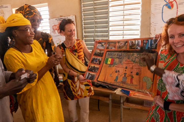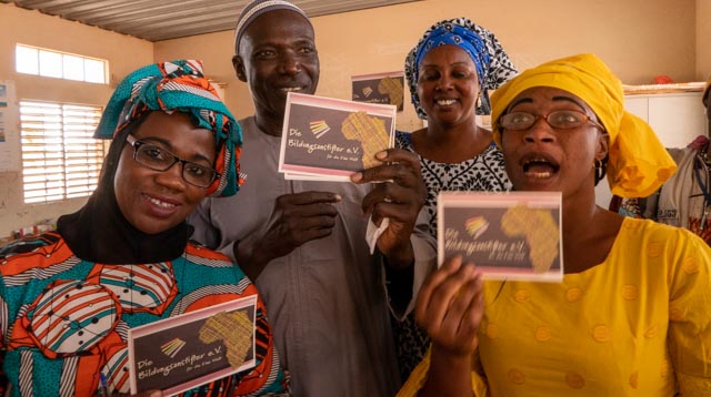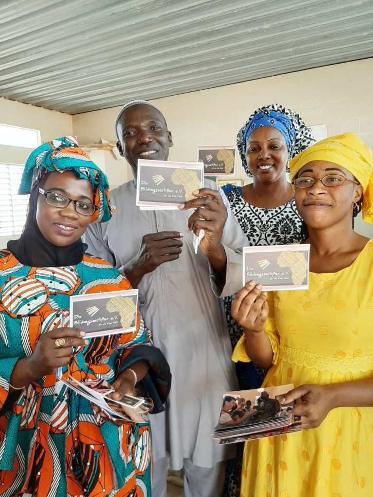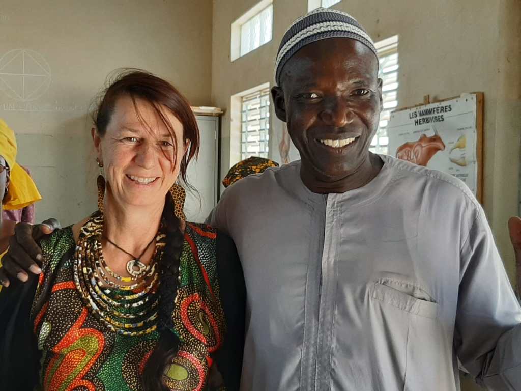 Die Zeit ging wie im Flug vorüber. Gegenseitige Geschenke und Aufmerksamkeiten wurden ausgetauscht, Flyer der Bildungsanstifter zum neuen Projekt ausgegeben und der 1. Vorsitzenden (Madame Roppelt) eine wunderschöne Halskette angelegt. Mit großer Begeisterung hat Direktor Moussa die drei mitgebrachten Laptops (aus zweiter Hand) in Empfang genommen: ‚Nun müssen wir die Zeugnisse für die 300 Schüler*innen nicht mehr handschriftlich erstellen, sondern können dies mit einem Programm machen. Die Laptops sind eine immense Erleichterung für unsere Arbeit!‘