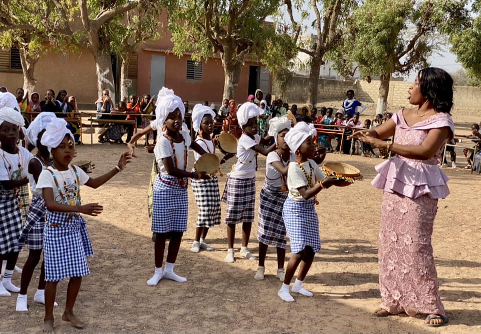 Die Vorfreude steigt, als wir auf staubiger Piste die letzten Kilometer zu ‚unserer‘ Dorfschule Keur Dieumb fahren. Seit 2017 pflegen wir einen intensiven Kontakt. Das Schüler*innen-Empfangskomitee steht schon am Tor und wir werden von einem Spalier aus 250 Kindern begrüßt.
