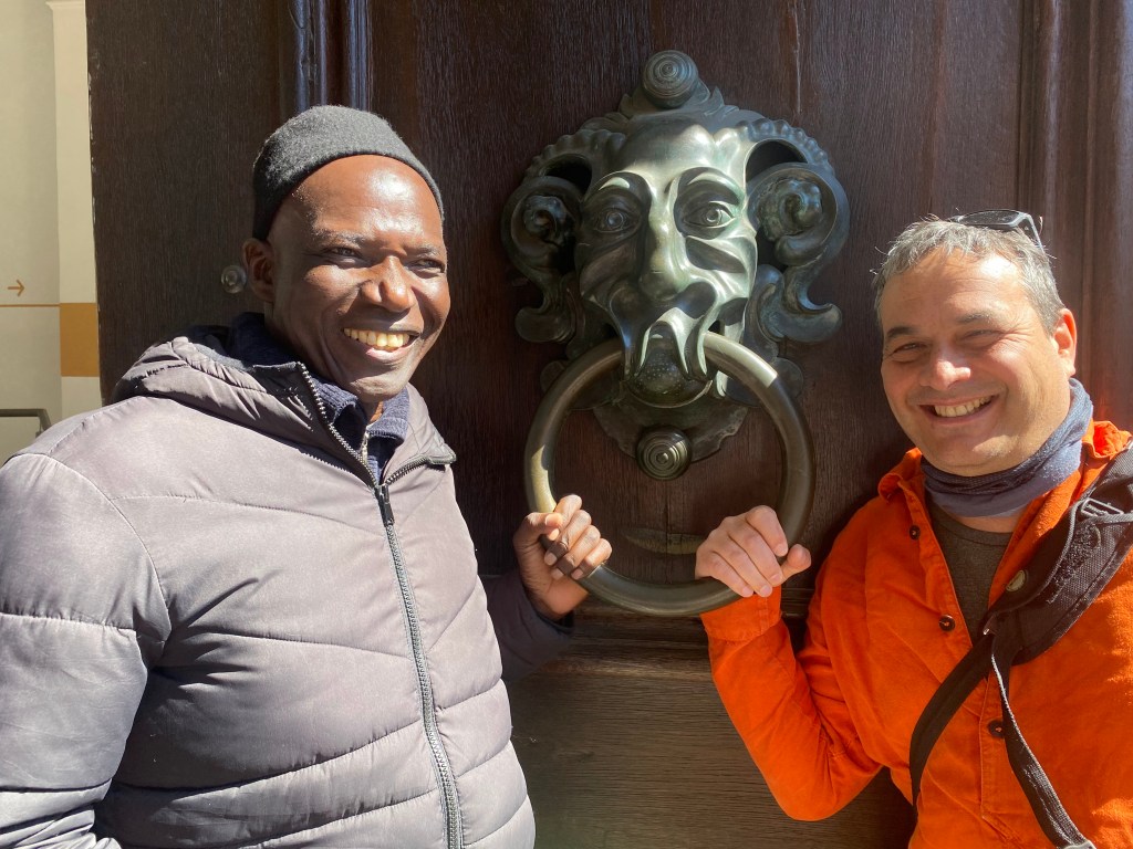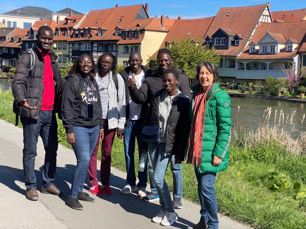 Gabriele Marsch, unsere umsichtige und engagierte Kollegin vom Erzbistum Bamberg, hat eine französische Stadtführerin engagiert – die gerade erst Gast bei unserem Film im Lichtspielkino war. So klein ist Bamberg..!