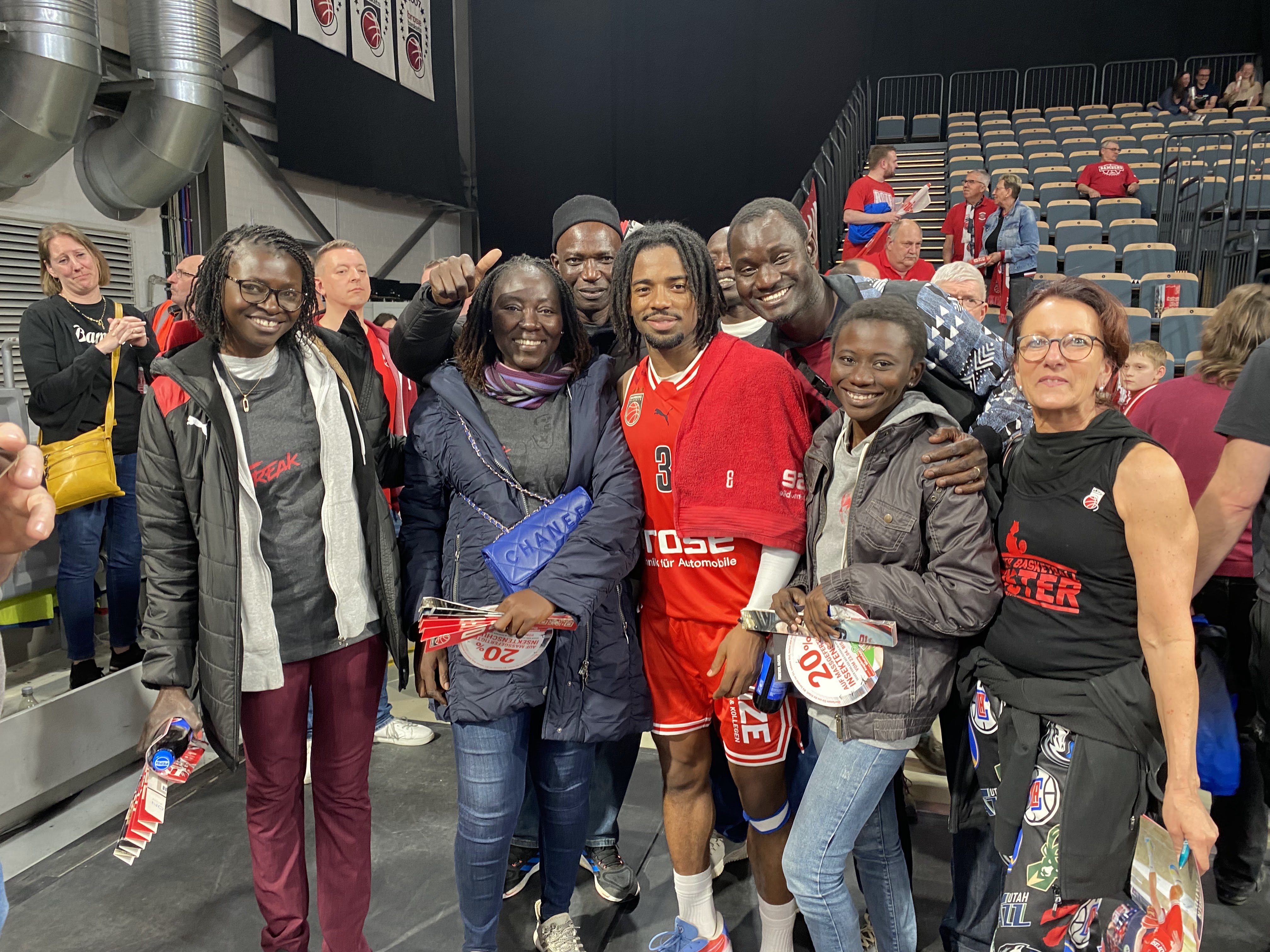 Unsere Bildungsanstifterin Birgit hat ihre Beziehungen ausgespielt und Karten für Basketball am Abend organisiert. Unsere Delegation wird in der Arena Bamberg über Stadionansage begrüßt und fiebert bis zur letzten Sekunde für Bamberg mit.