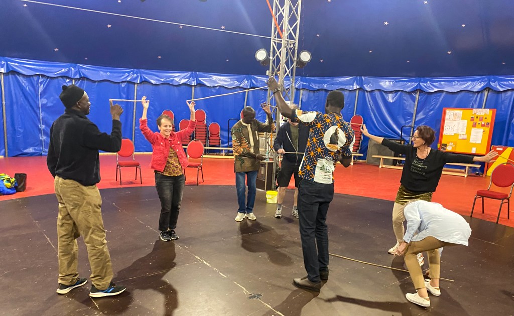 La majorité des instructeurs adultes présents sous la tente possèdent, outre une formation de cirque ou une formation continue, une formation pédagogique de base ou un diplôme en pédagogie sociale, en pédagogie, en éducation spécialisée et/ou en soins éducatifs spécialisés.