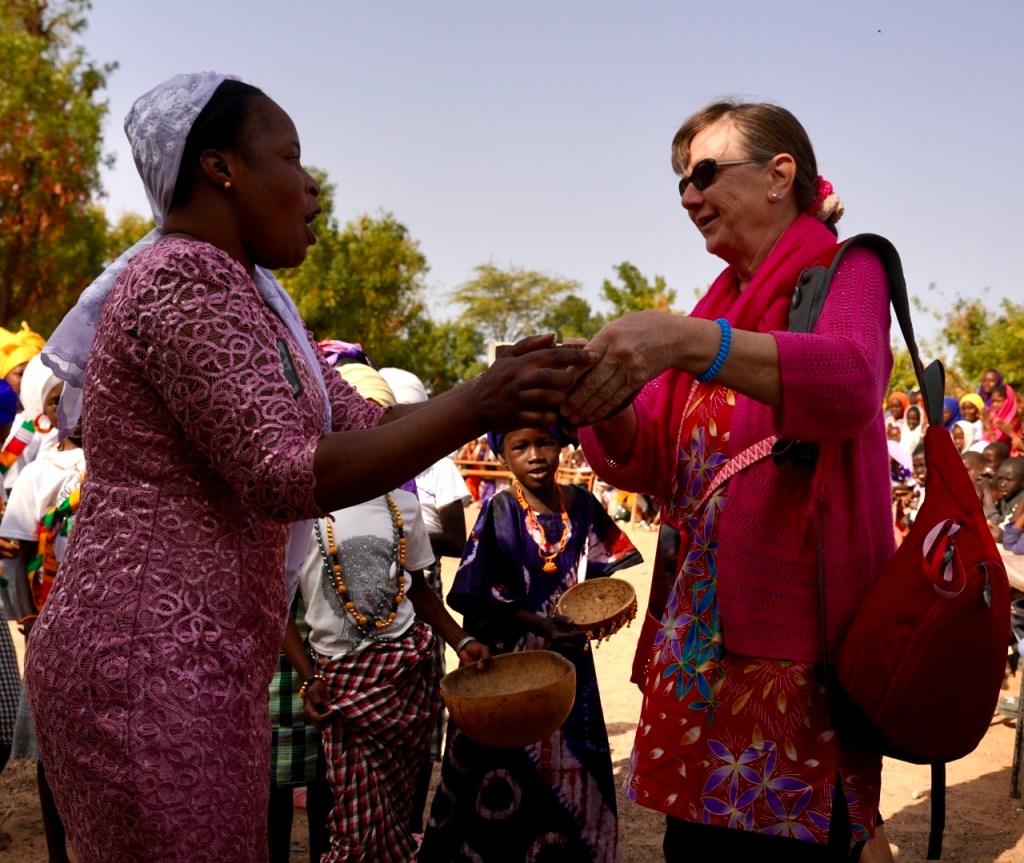 Zusammen mit dem Dorfältesten, dem Imam, der Vertreterin des Elternbeirats und dem Kollegium sitzen wir noch bei einem Essen zusammen und tauschen Neuigkeiten aus. Und natürlich sind wir nicht mit leeren Händen gekommen. Wir überreichen einen Scheck und sind gespannt, welches kleine Projekt damit finanziert werden kann.
